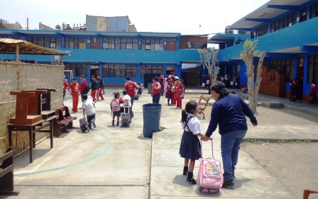 Chimbotenlinea.com (Por: Cintia Cabrera).- Cerca de dos horas, los escolares de la Institución Educativa (I.E.) “Augusto Salazar Bondy” permanecieron retenidos en el interior del plantel ante el temor de ser víctimas de los maestros huelguistas que se encontraban en el exterior del plantel y esperaban la salida de los profesores denominados “amarillos” por ambas puertas de ingreso.