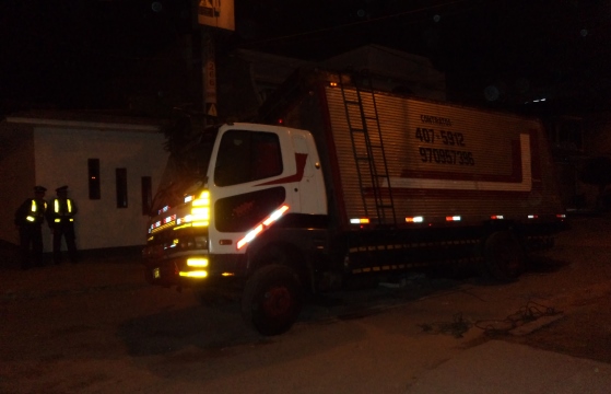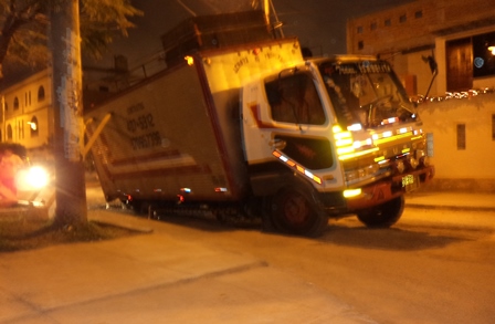 Chimbote en Línea (Nuevo Chimbote).- Tardó demasiado en suceder. Un camión frigorífico que transitaba por las calles de la urbanización Santa Rosa en Nuevo Chimbote, se hundió al ceder el débil pavimento de esas arterias, que fueron rellenadas con desmonte y otros materiales hace aproximadamente 5 años, cuando se realizaron trabajos del cambio de tuberías, que tienen más de 30 años de antigüedad.