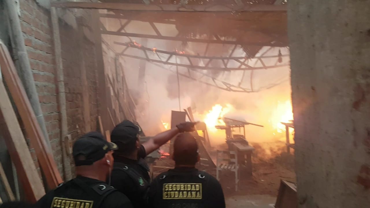 Chimbote en Línea.- Personal de la Unidad de Serenazgo de Nuevo Chimbote redobló esfuerzos para controlar un incendio suscitado en una maderera ubicada en la urbanización Los Héroes.