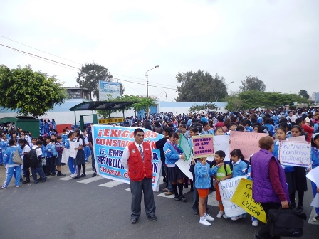 Escolares de IE. República Argentina realizan un plantón y exigen reconstrucción