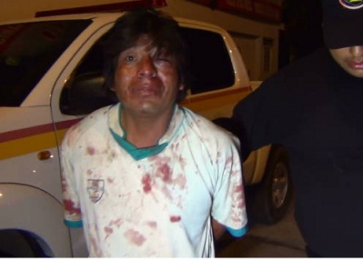 Cogió un filudo cuchillo de cocina y le hizo un corte en el brazo derecho a la joven; doña Catalina no soportó ver a su hija herida, cogió un palo y golpeó a su yerno hasta dejarlo con el rostro ensangrentado y con hematomas, incluso habría comprometido un ojo.