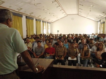 Chimbotenlinea.com (Por Cintia Cabrera).- Ronderos vecinales, agentes de serenazgo y secretarios generales de diferentes pueblos participaron de la charla de seguridad ciudadana dictada por  Elidio Espinoza Quispe, asesor de seguridad de la comuna distrital. El evento tuvo la finalidad de integrar al pueblo con sus autoridades en el esfuerzo de combatir la delincuencia.