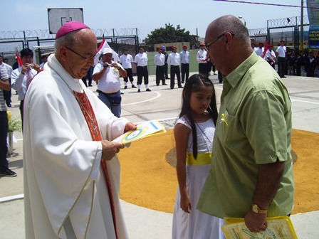 Chimbote en Línea (Policiales).- Nos dieron el ejemplo. Los internos e internas del penal de Cambio Puente se pronunciaron hoy a favor de la paz y condenaron la violencia en una singular actividad que contó con la participación del obispo Ángel Francisco Simón Piorno y del alcalde provincial Luis Arroyo Rojas.