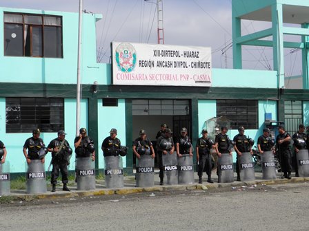 Asimismo, han llegado a esta provincia 40 policías más por disposición del Ministerio del Interior (20 del Escuadrón Verde de Trujillo, 10 de Huaraz y 10 de Chimbote)
