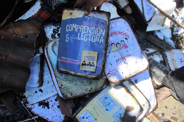 Chimbote en Línea. – Un incendio registrado en uno de los almacenes de la UGEL Santa ubicado en la avenida Enrique Meiggs en Chimbote arrasó con un centenar de textos escolares y guías para docentes que iban a ser distribuidos a las instituciones de primaria y secundaria de esta jurisdicción.