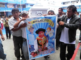 30/07/2012 (Chimbotenolinea.com ).- Desgarradoras escenas de dolor protagonizaron hoy la madre, familiares y compañeros de escuela, del pequeño Manuel Lescano Ancajima, de 8 años, quien es una víctima más de la violencia y la inseguridad que se vive en nuestra ciudad. Manuelito, fue un niño muy amado, y eso se pudo comprobar esta mañana durante el homenaje que sus amigos y profesores le rindieron en el colegio Antonio Raimondi. (Fotos: Lindberg Cruzado)