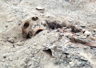 Trabajadores que instalaban postes para una empresa de comunicación descubrieron los restos óseos que habrían sido semienterrados, probablemente hace una década.