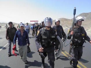 Samanco para de allí, a la altura del kilómetro 414 de la Carretera Panamericana Norte, marchar hacia el peaje de Besique, donde realizaron un plantón para hacer llegar su voz de protesta.