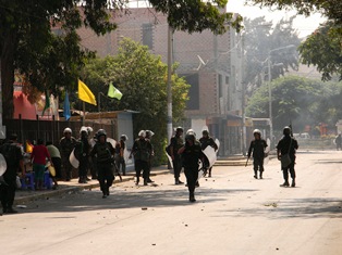 Chimbotenlinea.com (Redacción Central).-Unos 300 efectivos de la Policìa Nacional se enfrentaron hace algunos instantes a los centenares de agricultores que desde las primeras horas de hoy habían bloqueado la Carretera Panamericana Norte, a la altura del puente de Sechín en Casma.