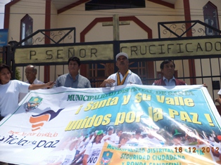 Chimbote en Línea (Regionales).- Unas 2 mil personas, vestidos con atuendos color blanco y portando afiches, banderolas y pancartas, se desplazaron masivamente por las principales calles y avenidas del distrito de Santa para decir No a la violencia y Sí a la Paz.