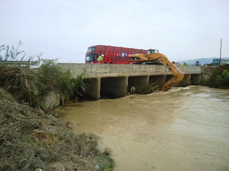 “Se están realizando los trabajos por las zonas de Huambacho, El Arenal, La Huaca, donde las aguas de los ríos Jimbe, Moro y Nepeña arrasaron todas las compuertas que los agricultores con tanto sacrificio construyeron. Esperamos que con este trabajo disminuya la mala situación por la que atraviesan”, mencionó.