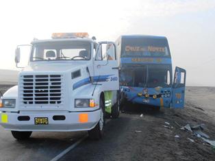 La Policía de Carreteras informó que el siniestro ocurrió cerca de las 3.30 a.m., el chofer del vehículo interprovincial de placa BOE 970 de la empresa de transportes Cruz del Norte que partió de la ciudad de Lima con destino a Trujillo chocó por alcance su unidad contra un tráiler.