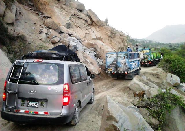 Casma: Despejan vía afectada por derrumbe de rocas que dejó vehículos varados